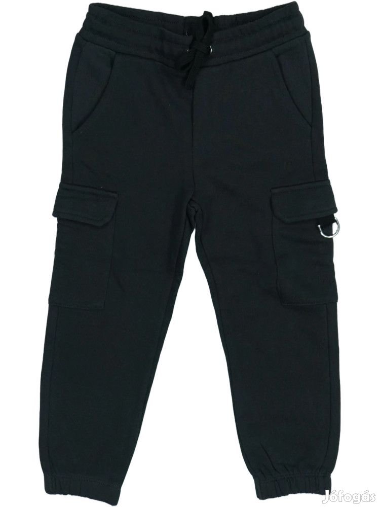 Cargo stílusú melegítőnadrág fiúknak, gumis derékkal és húzózsinórral. A nadrág mindkét oldalán praktikus cargo zsebek találhatók, valamint oldalt egy karabiner is van. A szár alján gumis összehúzással rendelkezik, ami kényelmes viseletet biztosít. A sportos és praktikus design tökéletes mindennapi használatra, játékhoz és szabadidős tevékenységekhez.
