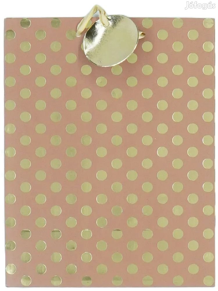 Arany pöttyös ajándékzacskó arany szalagfüllel. Mérete: Szé: 18cm X Ma: 23cm X Mé: 10cm