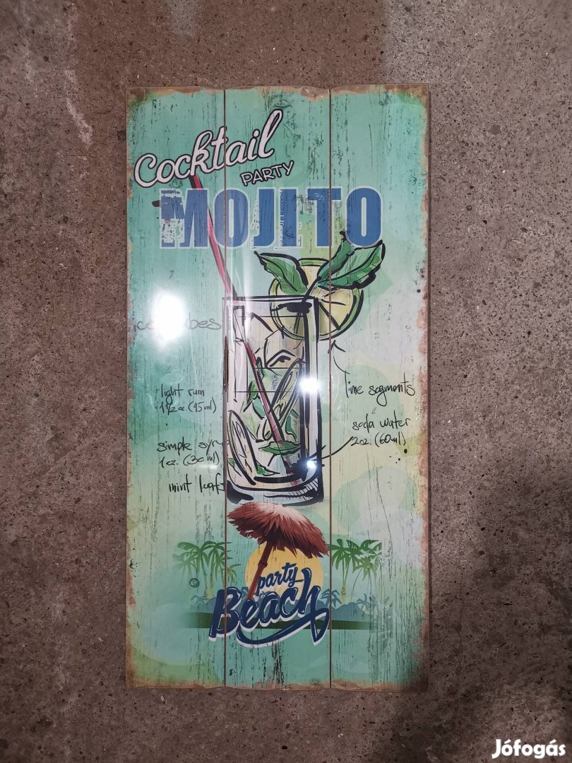 Eladó a képeken látható mojito koktél parti falra akasztható falitábla. Szép darab, a mérete: 60x30cm.