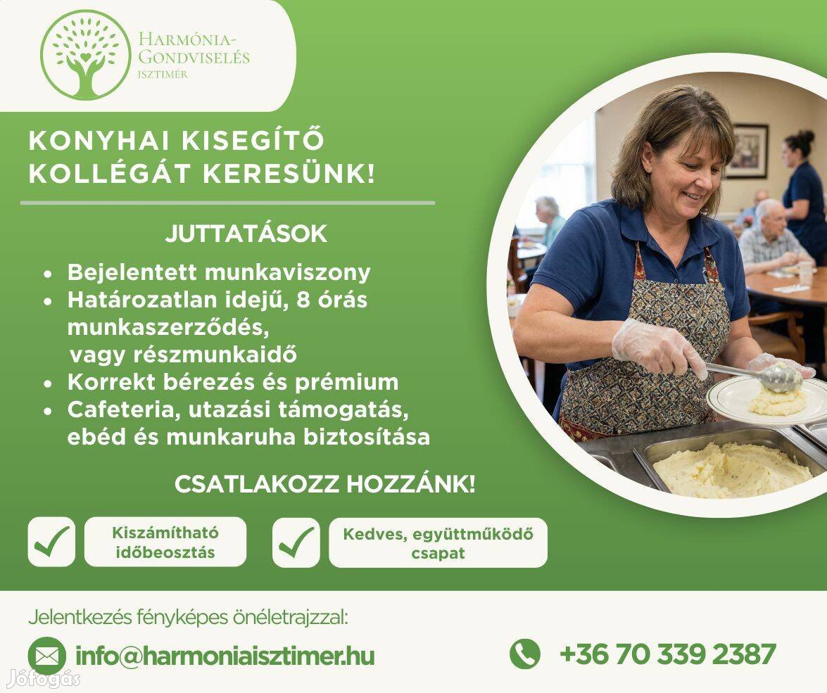 Konyhai kisegítő kollégát keresünk isztiméri intézményünkbe.