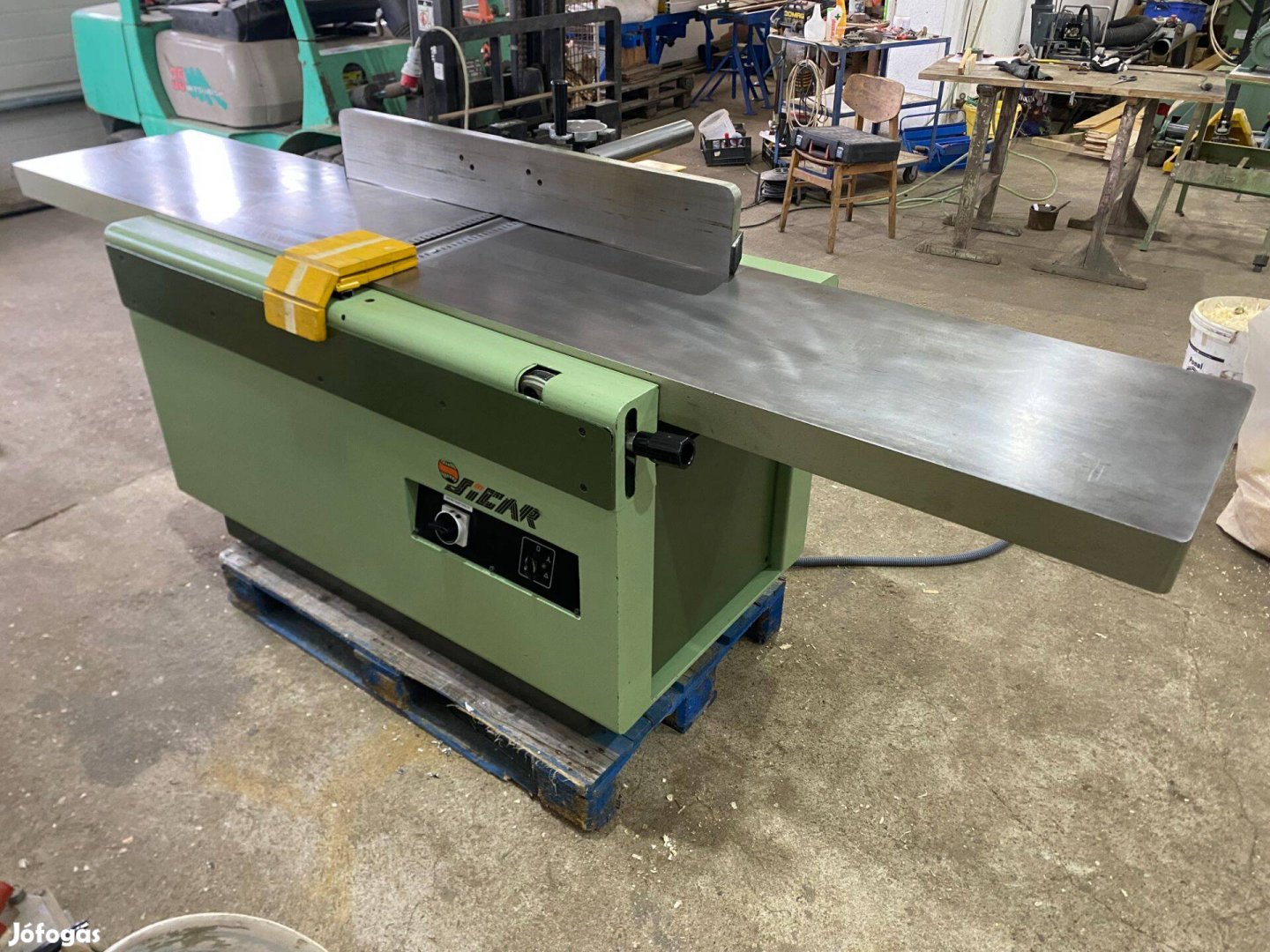 Sicar 500-as egyengető gyalugép. Felső kategóriás ipari gép, négy késes, 4Kw-os, hosszú 2750mm-es asztal lappal. Kiváló vezetővel! (azonosító: 2470)